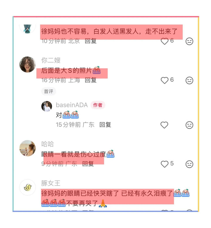 近日小S在网上晒出一段视频,她把奖杯送给黄春梅,黄春梅打开奖杯,笑中带泪,称心里的洞补上了!视频里黄春梅身后的柜子上,放着大S的照片,很显眼,而黄春梅眼睛肿的厉害,网友说一看就是伤心过度,经常哭,已经有永久泪痕了,不少网友表示白发人送黑发人,70多岁的人了,女儿走了10个月了,能走出来不容易了
